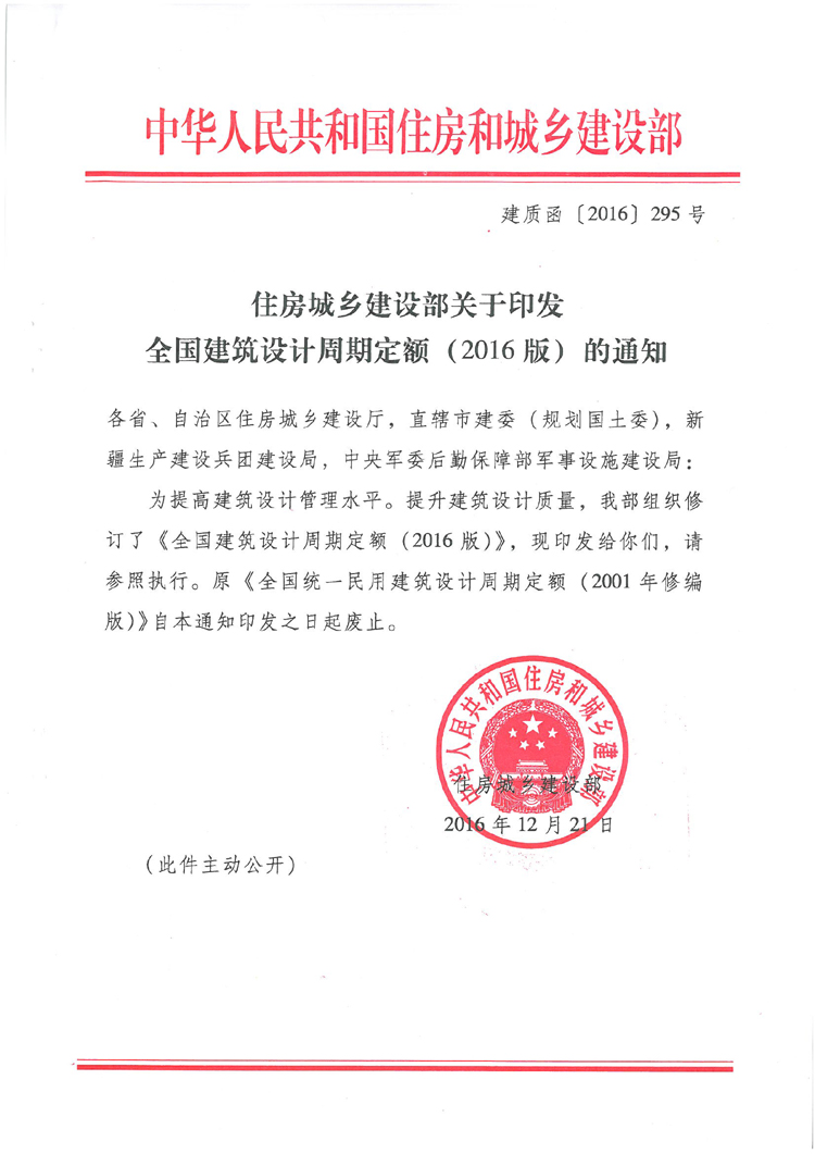 住房城鄉(xiāng)建設(shè)部關(guān)于印發(fā)全國(guó)建筑設(shè)計(jì)周期定額(2016版)的通知