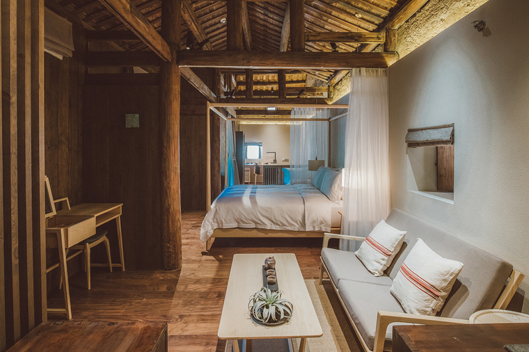 青普土樓文化行館位于福建漳州的文化遺產(chǎn)地,由5棟傳統(tǒng)的土樓建筑組成,擁有十分悠久的歷史,其中3棟是在晚清時期建成。設計團隊將土樓古老的、以夯土墻和木結構為主的風格保留下來,維持了建筑的原始樣貌,同時在空間中置入了富有當?shù)靥厣乃囆g裝飾,強調(diào)出青普特有的文化內(nèi)涵。行館共包含22間雙臥室套房,在內(nèi)部,綠色的板巖與溫暖的實木和冷杉木形成搭配,古典樣式的柱梁與現(xiàn)代空間結合在一起,凸顯出傳統(tǒng)工藝的美感。由梵幾(FNJI)設計的室內(nèi)家具將這種傳統(tǒng)工藝與現(xiàn)代的設計語言結合起來,更好地適應了當代中國人的生活方式。